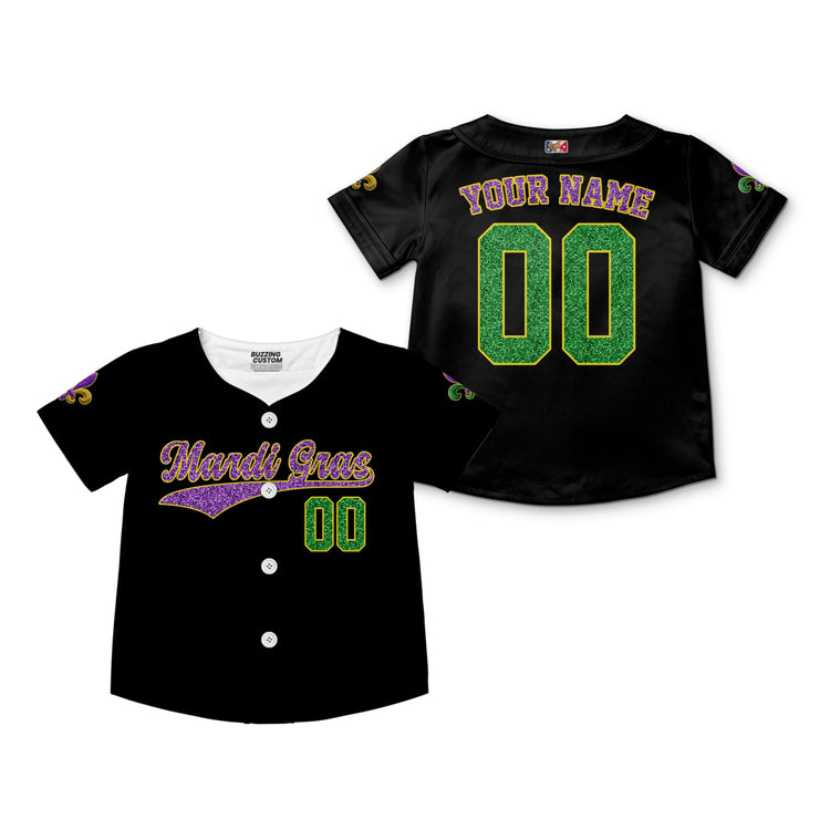 Custom Black Mardi Gras Tkb38 Kid Baseball Jersey
