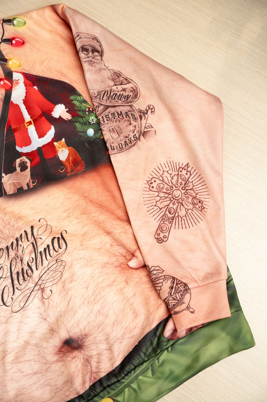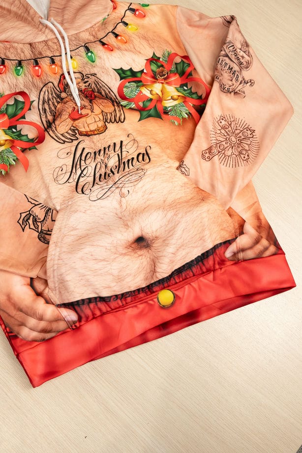 Costume Christmas Hairy Fat Flashing Santa Shirt Cosplay TKA55