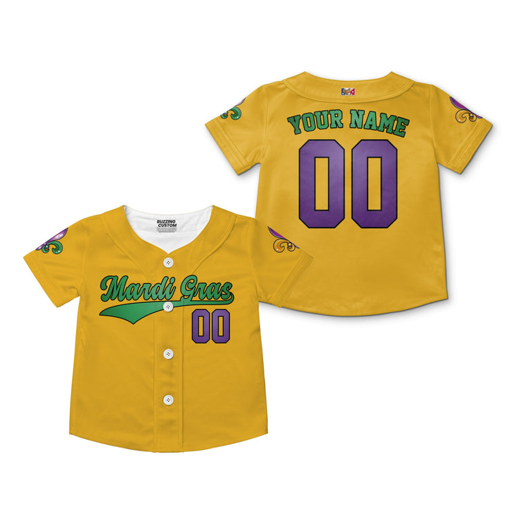 Custom Mardi Gras Tkb39 Yellow Kid Baseball Jersey