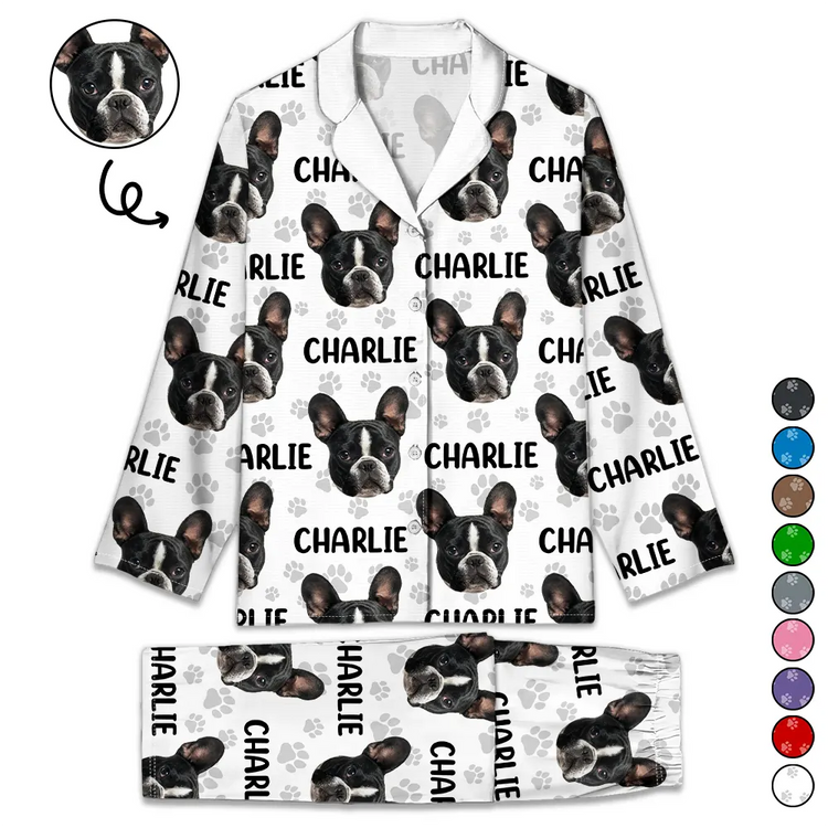 Custom Photo Funny Pet Face Pattern Dog Cat Family - Personalized Long Pajamas Set