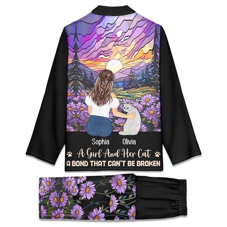 Flower Field A Girl And Her Dog And Cat - Personalized Long Pajamas Set